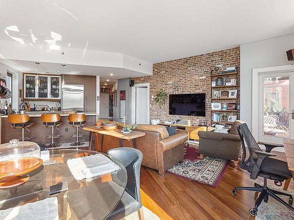 2 Bed / 2 Bath / 1,349sf / Balcony / Washer & Dryer In Unit Come Home to The Oakland - Greenpoint's finest condominium. Easily seen is the meticulous attention to detail from the day construction started all the way to the management and maintenance of the building today 14 years later. No corners were cut and time and effort put into the construction so that your living experience is uncompromised. Apartment 4B Highlights -The Open Chef's Kitchen Features Locally Handcrafted Kitchen Cabinets, Danby Marble Countertops, Stainless Steel Appliances from GE Monogram & Bosch. -The 2 Spa Quality Bathrooms Featuring a Primary Bathroom with Deep Soaking Tub & Separate Glass Enclosed Shower. -Rounding out the perfect apartment you'll find; Sound Attenuated Walls, Triple Pane Pella Designer Series Windows with Integrated Blinds, Solid Brazilian Cherry Hardwood Flooring, Custom Moldings, Exposed Brick Accent Walls, in Unit Bosch Washer/Dryer, Private Balcony, Custom Closets & Shelving along with a Wall of Windows and 10'+ ceilings. The Oakland's Common Areas -Spacious Designer Lobby with Secure Mail/Package Room -Sun Terrace on the 3rd floor to relax on beautiful days -Garden Patio spanning the entire length of the building on the 2nd floor with picnic tables and sun chairs -Club Room with Big Screen TV, Sofa, Dining Tables -Exercise Area with some of the best equipment -Video/Virtual Doorman Service -Deeded Underground Parking (available by separate sale, not included in apartment sale price) -Bike Storage & Private Storage (space subject to availability and additional fees) These are just a few of The Oakland's unbeatable qualities that provide the ideal setting for a lifestyle of timeless elegance and enduring value.