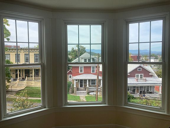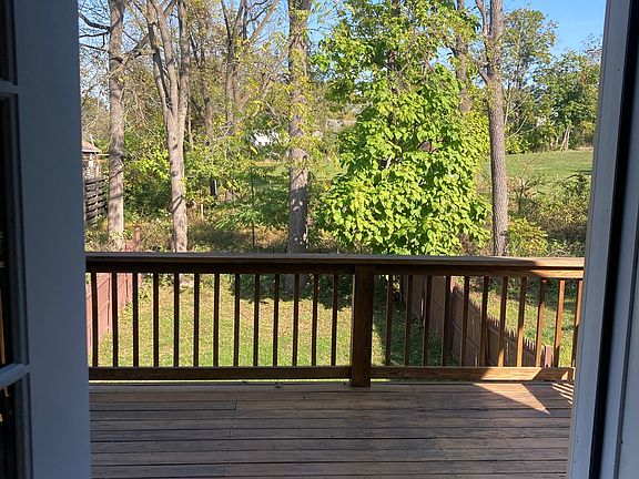 Sunny upstairs flat with views of the Catskills and Hudson's steeple tops. There's a private deck overlooking a wooded green space and access to a shared lawn with a firepit/barbecue area.