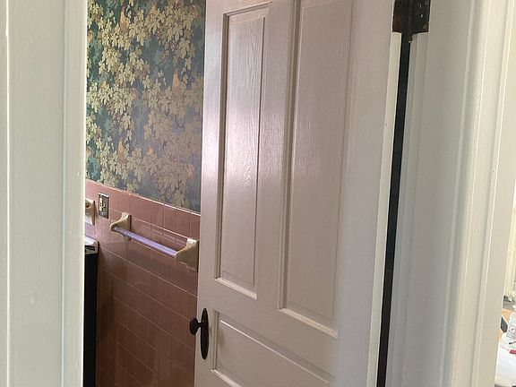 The kitchen was recently updated with custom cabinets, quality appliances, and Devol fixtures. Bedrooms have wool-blend carpet, and the bathroom features original tile and Little Greene wallpaper. Laundry nook with washer and dryer in flat.