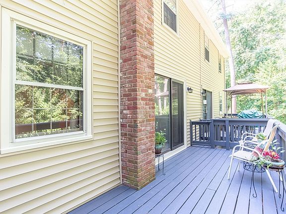 A must see! Difficult to duplicate, an amazing opportunity to purchase this beautiful and well maintained large town house in wonderful Easton. Set back in tranquil Rolling Pines Estates, this lovely three bedroom home is ideal for families and downsizers alike. Offering expansive open floor plan, gleaming hardwood floors, galley kitchen with bump out dining area & bay window, pull out shelving in oak cabinetry, large living room with beamed ceiling and dining room which opens to an oversized deck for that morning coffee or sip of wine. Magnificent for entertaining and relaxation. Huge Family Room with pellet stove & full bar for family get togethers. Large attic with storage. Mature plantings all around. Walk to pool, club house, basketball courts.