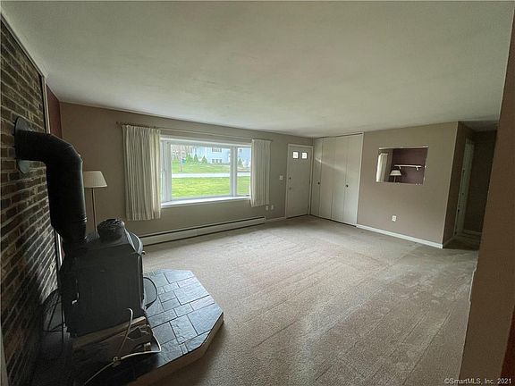 Come make this 3 bedroom Ranch located in established neighborhood yours with minor cosmetic updates! Solid built home with major improvements in past 8 years: roof, siding, windows, insulation. Kitchen open to family room with wall a/c unit, bright living room with Vermont Castings woodstove and large bay window, storage room could become 4th bedroom with sheetrock finishing and heat source installed, large sunroom off back with windows, boiler approx 1 yr old. Extra full sized refrigerator, upright freezer and washer, dryer included. Oversized detached 2-car garage includes storage shelves, shovels, rakes, and work bench practically fully stocked with nails, screws and all sorts of things. What you see in the garage stays including 2 window a/c's and new pull down attic stairs. Nice level backyard with shed. Conventional or cash sale only.