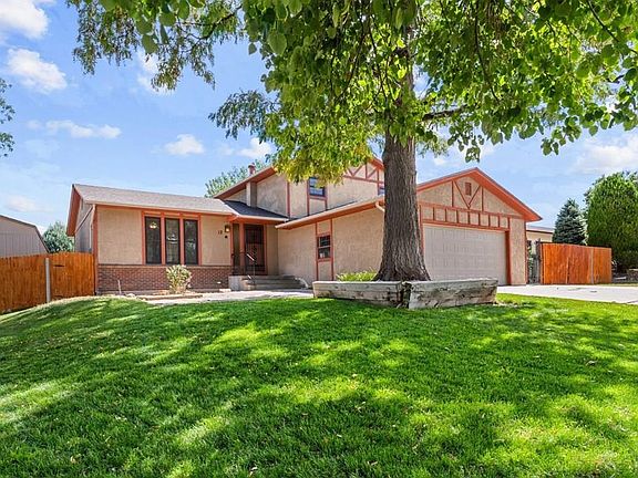 Welcome to the serene El Camino Subdivision of Pueblo, CO. This spacious 3-bedroom, 3-bathroom home with a 2-car garage offers flexible living spaces across its unique 3-level layout. As you enter, you'll be greeted by a large living room and well-appointed kitchen featuring a peninsula and newer appliances. It is seamlessly connected to the dining area and living room which flows directly out to an open patio, perfect for casual meals or entertaining guests. The master bedroom on the upper level offers a retreat with picturesque mountain views and ensuite bathroom with walk in shower. Two more bedrooms and a full size bath complete the upstairs. The real magic happens on the lower level, with yet another walkout to a beautiful wraparound patio and paradisaic landscaping. On the lower level, the family room is complete with a fireplace, setting the stage for enjoyable evenings and gatherings with friends and family. In addition, you'll find another full bath, a laundry area and walkout to the garage for added convenience. The oversized 2 car garage includes all of the storage shelving and the refrigerator. Outside, meticulous landscaping frames the property, providing a tranquil backdrop for outdoor enjoyment. RV parking and two storage sheds offer practical storage solutions for outdoor enthusiasts. With upgraded amenities, including all new custom Anderson windows, beautiful French doors, and of course a swamp cooler -this home combines functionality with style.