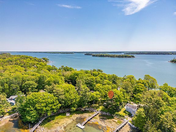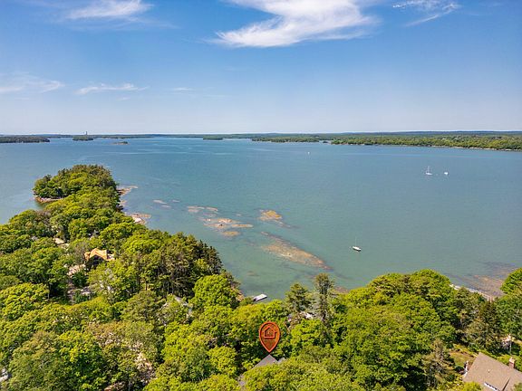 A slice of paradise, where beauty & modern comfort meet in an impressive, award winning LEED Platinum certified home, one of only thirteen in Maine. Nestled on a quiet dead-end street, a spacious lot with mature trees & naturally manicured surroundings, offers expansive views of Casco Bay & the cherished Wolf Neck Peninsula. Immerse yourself in flowing tides from this peaceful, protected cove offering great swimming from your own dock & abundant recreation. Large triple glazed windows fill the home with natural light year-round, creating a warm & inviting living space. Generous main home offers 2+ bedrooms & 2.5 baths, architect-designed with sustainability & durability in mind. Passive solar, solar hot water heat, metal roof, first floor radiant heat & an extremely tight shell ensure low energy use, while non-toxic materials provide a safe & healthy environment for a worry-free, turnkey transition. Cozy up by the carefully selected Morso wood-burning stove with a large glass door enticing one to get lost in the dancing flames. Polished concrete & carbonized bamboo floors, add elegance & style. Enjoy outdoors in a screened-in three-season room or around a fire at the shore's edge as you take in a glowing sunset. Hop into your sailboat on your own mooring, kayak, or paddle board to explore miles of sheltered island coastline. A charming guest cottage with a bedroom, sleeping loft, & bathroom is perfect for visitors or a private retreat. Nature lovers will delight in abundant wildlife & a striper fishing gold mine, a truly unique, tucked away oasis. Convenient to Amtrak, I95, Freeport & Brunswick, as well as Portland Jetport, this home meets all your work & lifestyle needs for a perfectly harmonized life. Here, you can truly have it all: modern sustainable living, breathtaking natural beauty & easy access to amenities. Experience a perfect blend of thoughtful design & enduring quality in this exceptional waterfront property. Welcome to your new sanctuary.