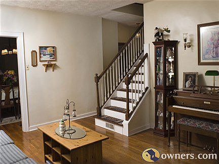Spacious updated home on nearly an acre. Gorgeous sun room opens to 20x14 deck overlooking vast tree-lined yard. 1st floor bedroom and den with full bath, LR, DR, Kit and Laundry. 2nd floor 4 bedrooms including huge master bedroom suite with vaulted wood ceiling! Huge finished lower level gameroom, workout area, in-law area with walk out. Tons of storage space. Home warranty.
