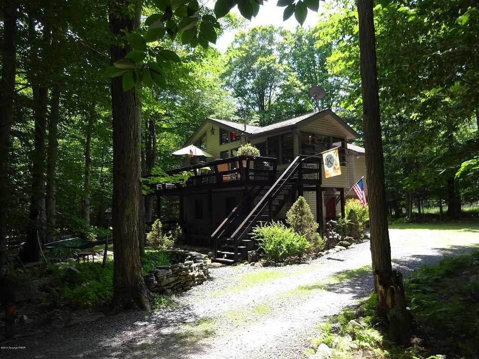 Pride of ownership is evident in this vinyl-sided 3 bedroom, 1 1/2 bath raised ranch in a park-like setting in amenity-filled Big Bass Lake. Newer maple kitchen with granite counters, open floorplan, efficient coal stove to supplement electric heat, huge deck, screened porch and one-car garage. Lower level family room can serve as 4th bedroom. What more can you ask for? North Pocono Schools.