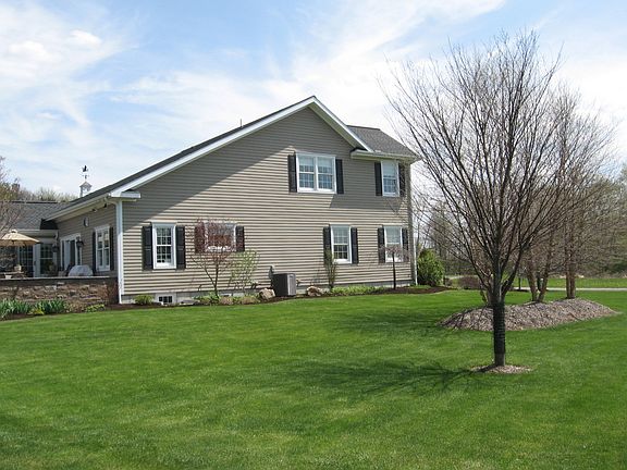 Beautifully maintained, custom built, 2 story, 4 bedroom home with first floor master bedroom and bath. This is a top quality home built in 2008 by premier Ithaca Builder Richard Jump. First floor includes oak kitchen with stainless steel appliances including double ovens, center island with cooktop, and kitchen eating area. There is also a formal dining room, family room, laundry room, 1/2 bath, office, master bedroom suite and 4 season porch. The second floor includes 3 bedrooms, spacious closets, full bath and sitting/social area plus a walk-in attic. The 3 car garage includes extra room for storage. There is a full basement with insulated, finished walls. A lovely two-tiered stone patio with built in stone fireplace is great for entertaining. There are stone walkways in the front and back of the house. This home and property is a must-see!