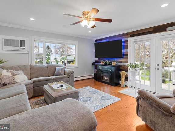WOW! This one of a kind expanded Levittowner will impress you with its layout and updates galore! The perfect home for the buyer who likes to cook and entertain. Look no further! Upon entering this beautiful home be taken aback by the uniqueness of the relocated expanded kitchen, featuring ceramic tile flooring, 42" chestnut shaker cabinets with self closing drawers, upgraded granite countertop with drop in stainless sink & pullout faucet with touch on/off & built in garbage disposal. The built-in dual level granite breakfast bar is perfect for enjoying your meal or beverage while conversing with the cook of the home. Appliances include built in GE self cleaning glass oven with above stainless vent fan with light (the highlight of this kitchen), side by side refrigerator with in door ice & water & built in microwave & dishwasher. The kitchen is accented by plantation wood shutters, recessed lighting & modern style ceiling fan. The dining area off off kitchen breakfast bar features hardwood flooring, ceiling fan & large closet, which makes for perfect kitchen pantry or storage. The kitchen pass thru is convenient for entertaining, easily pass food and beverage to guests in adjacent recreation room which consists of a large vinyl bay window & 15 light French door leading to rear patio, allowing for lots of natural sunlight. Additional features of the rec room include an accent wood plank wall, hardwood flooring, crown molding, recessed lighting, & ceiling fan. This home comes complete with built in surround sound system with additional blue tooth system, great for enjoying Sports & movies with theater sound. The three bedrooms all features wall to wall carpeting. For those looking for a unique main bedroom, office or den, the original living room of this home has been redesigned with a private entrance with 15 light door, original brick fireplace which has been updated with faux paint & wood stove insert, lots of windows, including newer double hung front windows for lots of natural light, laminate flooring, ceiling fan & exterior door to private side patio - set up your perfect private space "getting away from it all". The original full bath has been updated with fiberglass tub with fiberglass walls, ceramic tile flooring, dual flush toilet, wood vanity with cultured marble top, mirrored medicine cabinet & additional built in wall cabinet. Owner has added a unique second full bath which features ornate oval vanity with metal sink with built in triple mirrored medicine cabinet, stall shower. Kohler toilet, ceramic tile flooring, bead board walls, heat light on timer & the best of all, heated floors perfect for keeping your feet warm when stepping out of your morning shower. Ceramic tile hallway with lots of closet space. The original kitchen area has been converted to walk in storage room. The laundry/mud room off of eat-in kitchen consists of washer/dryer & laundry tub, & has separate electric oil-filled baseboard heat, commercial carpet, recessed lighting, and exterior door to covered carport area, perfect for entering home on those wet or snowy days. Exterior features include 2 year old 3 dimensional roof, maintenance free vinyl siding, replaced windows, 5 car macadam driveway, professionally landscaped front yard with stone & mulch bed, covered front porch, large partially fenced-in rear yard with cement patio, large vinyl sided one car garage with double door front & side entrance door, additional barn style shed with T-111 wood siding, ide yard with cement patio and 6' white PVC fencing for added privacy with electric & flood lights, perfect for a hot tub (owner has a hot tub there currently, can be removed if requested) Extras include replaced heater with 3 zone baseboard heat, pull down hallway attic stairs for additional storage, fresh paint & six panel doors throughout, & clean-out for sewer line in rear of home. Close to major roads, shopping & train station. ACT FAST! THIS HOME WILL NOT LAST!
