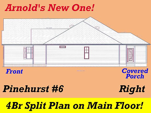 ''ARNOLD's NEW ONE!'' - with room to grow. Listed here as a 4BR 2 Bath home with unfinished upper area. Covered front Porch opens to lovely foyer and Formal Dining room to left. Vaulted Great Room that's open to Center Island Bar & Designer Kitchen. Beautiful Granite Counter Tops. Plenty of cabinets and pantry! Corner Fireplace w/ built in bookcase. Breakfast room and Screen Porch overlook backyard (to be fenced). Split Br plan. Master suite with artesian shower and huge walk-in closet. Mud room, with bench, from side entry double car garage, from adjoining laundry. 3 good sized bedrooms with bath on split wing. Hardwood floors & fine moldings. There is an unfinished Bonus Room/Bed#5 & bath - with ROOM TO GROW! NOW in foundation - READY July! Call for details.