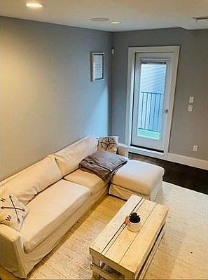 2/2 with Two private outdoor spaces, in-unit laundry, private heated garage parking, central air, built in surround sound, loft office area, video entry system, private roof deck with fire pit and new deck furniture, private balcony, gas fireplace, stainless appliances, granite countertops, Unit can be delivered partially furnished. Applicant is responsible for credit and eviction report fee.
