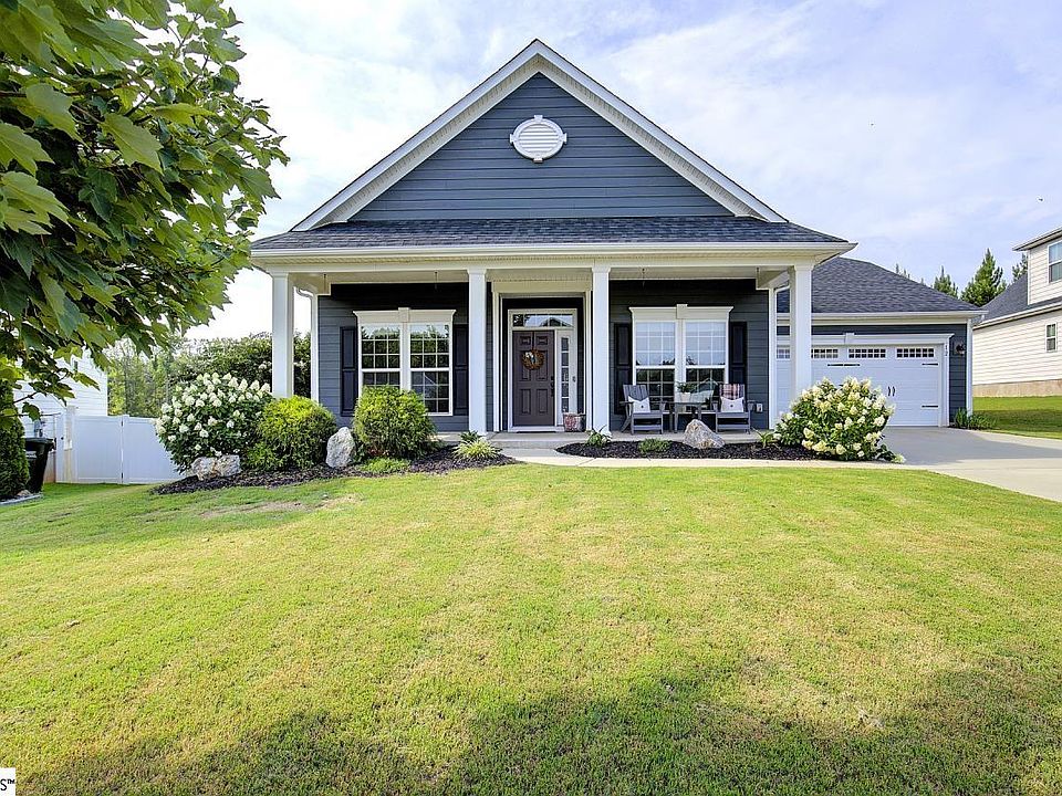 Stunning 3 bedroom, 2 bath located in the highly sought after Riverstone community! You will immediately notice the attention to detail as soon as you walk through the door. Beautiful molding throughout, archways, incredible storage and so much more! Entering the foyer the dining room opens to the right and continues to the open great room with cozy fireplace and cooks dream kitchen. The large kitchen comes with upgraded cabinets, a walk-in pantry, stainless steel appliances as well as a large sit-in island. The luxurious owner's bedroom features two large walk-in closets. The owner's bath boasts dual vanities and an oversized shower. The other two bedrooms are split from the owner's suite. The home has an easy flow perfect for entertaining. Enjoy spending time on the large, covered deck with a treelined view and mature landscaping. Recent upgrades include owner's bath remodeled, kitchen backsplash, new carpet in the great room, dining room, and master bedroom in 2023, back deck covered in 2021. Riverstone offers every amenity imaginable such as a clubhouse, workout room, resort-style pool, tennis courts, and a walking trail with a pavilion along the Reedy River. Conveniently located to Greenville, Simpsonville, CCNB Ampitheatre, Conestee Nature Preserve and the new Bridgeway Station.
