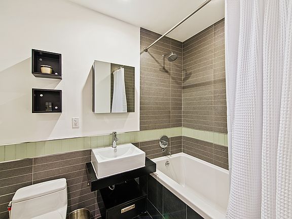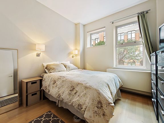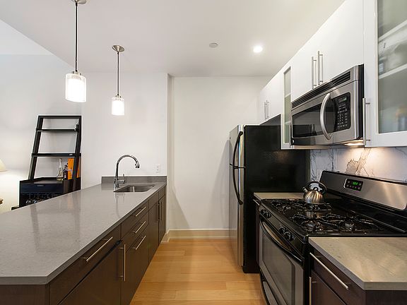 Move right in to this sun-splashed 1 bedroom condo on a quiet tree lined Williamsburg block. This fabulous apartment boasts a designer kitchen with stainless steel appliances, dishwasher, and Caesarstone countertops with breakfast bar. The spa-like bathroom, includes an extra large soaking tub. New hardwood floors run throughout the entire apartment. There is ample closet space and a washer dryer in the unit for added convenience. Smart technology has been added that includes ecobee thermostats and this apartment also features smart tech lights and a smart tech lock system. 12 Monitor St is a boutique elevator condo building with landscaped common courtyards, video intercom and part time super. Located steps from McCarren & McGolrick Park, some of the most vibrant dining, nightlife and shopping in all of Williamsburg. Subway and bus access conveniently located on bustling Graham Ave.