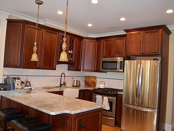 Gorgeous 2 bed/2 bath duplex in the desirable gaslight district. Totally renovated and freshly painted unit with open floor plan, high ceilings, hardwood floors & chef's kitchen with granite counters & ss appliances. Amenities include central air, gas fireplace, in-unit W/D, pvt storage room, walk-in closet and common roof deck with amazing city skyline views. Quaint, dead end street off of monument square, conveniently located to train, bus and restaurants. Available for immediate occupancy.