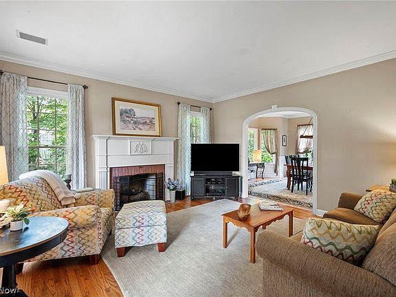 The classic cape cod located at 12 Morning Song Lane has one of the best locations in Hudson. Just a few blocks from the downtown shopping district as well as being close to churches and schools; it also has convenient access to highways leading to both Akron & Cleveland. Step up through the relaxing front porch before walking into the foyer, and immediately fall in love with its charm, featuring an angular stairway, wood floors, and custom moldings. The large gathering room with distinctive fireplace to the left and a handsome study with built-ins (currently used as dining room) to the right. The kitchen is perfect for family gatherings as these homeowners have completely renovated it by opening it up to the dining area. It has a vaulted ceiling, warm white cabinets, spacious island, beverage center, and stunning granite. At the other end is the cozy hearth area with soft seating gathered around a fireplace and TV. This unique floor plan has a spacious, first floor owner’s suite with a fully remodeled bath, which leads to the laundry room and back hall with second stairway. The rear stairs take you directly up to a large suite over the garage which can be a 5th bedroom. The current owners use it for an office with space for a lounging area, wet bar sink and cabinetry. There is a huge walk-in closet, as well as access to one of the bathrooms. Continue across the “catwalk hallway” to the three other bedrooms all with ample closets and access to ensuite baths. The lower level has a spacious media area with a bar, separate recreation & gaming space and comes with a pool table. There is also a huge exercise room. Plenty of storage is still available along with a defined area with workbench. The private backyard with its multi-tiered deck and patio is an ideal space for entertaining or quiet relaxation. Completed with lush landscaping and a serene setting makes this home a must see!