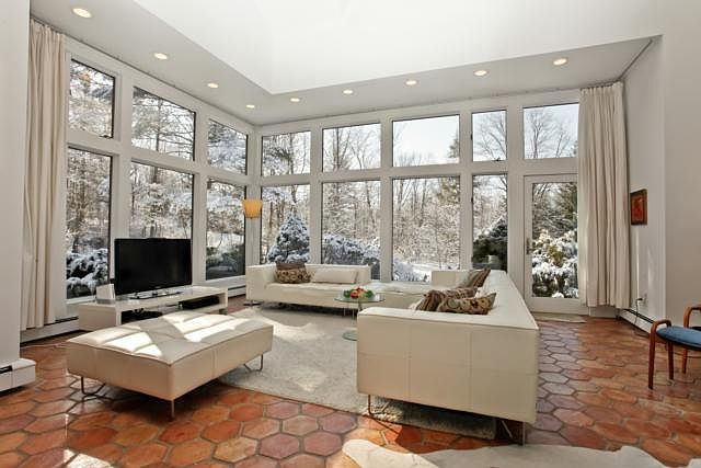 Spectacular modern home with open floor plan and massive windows overlooking bucolic vista. Bamboo floorscustom closets and superb lighting create a sophisticated modern European elegance not often seen in the US.Extensive renovations throughout with focus on qualitystyle and energy efficiency.The master bedroom loft suite boasts a massive tubdressing area and third floor office.The grounds with bridges over streamsfields for play and specimen plantings are magical. Convenient to all.