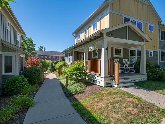 Bright and sunny end-unit in Eastview at Village Hill. Built by Wright Builders with a Leeds Energy rating and solar panels, and a battery bank which provides power during an outage. The 1st floor has an open floor plan with living room (two skylights) , kitchen with granite counters and a breakfast bar; dining area with access to the private patio with gardens. An additional room that can be used as an office or can easily be a master bedroom suite with adjoining full bath. Two spacious bedrooms on the second floor each have a walk-in closet and share a full bath with a laundry room. The lower level has a finished room with two closets and a legal egress allowing it to be a bedroom, office or studio space.. Gas stove in living room . Close to the bike path, walking trails along the river, community gardens, downtown and Smith College. A one car detached garage is included. OPEN HOUSE 8/6 AND 8/7 12-2… MASKS MUST BE WORN. (SELLER REQUEST)