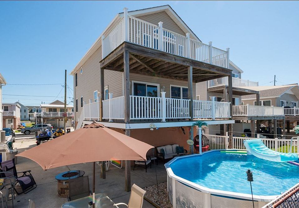 4 bedroom single home, 2 full baths, multiple decks, swimming pool, off street parking, friendly west wildwood neighborhood, WATERFRONT!!!