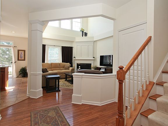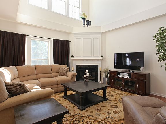 Beautifully maintained Jamison Model Townhouse on premium location in highly desirable Brettonwoods community. 1st floor has entrance foyer and spacious open floor plan featuring 2 story Great Room with gas fireplace, formal dining room, updated eat-in kitchen with center island, granite countertops and deck off kitchen overlooking private backyard - plus powder room, laundry room and 2 car garage. 2nd floor features master bedroom suite with tray ceiling and WIC, second bedroom and full bath. Beautiful hardwood floors on 1st floor, elegant moldings and freshly painted. Finished lower level with rec room, office/den, full bath, storage and utilities. Conveniently located to NYC transportation, shopping, schools and parks. A must see!!!