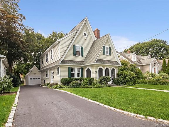 This is the house everyone on the street loves! Character and curb appeal are the hallmarks of this architecturally-pleasing 1930 colonial that blends the charm of yesteryear with modern amenities of today. A welcoming 3-season porch greets you as you open the arched front door. The main level offers an excellent floor plan for entertaining with spacious rooms, hardwood floors throughout, and a wood-burning fireplace in the living room along with a Jotul gas stove in the family room. The large dining room can accommodate huge holiday dinners or everyday family suppers. And, what a joy to cook in the roomy, functional kitchen with newer stainless steel appliances. Right off the kitchen is the magnificent, vaulted ceiling family room; a very special addition to this vintage colonial. Head up the gracious staircase to find the main bedroom with a walk-in closet and ensuite bathroom with whirlpool tub, separate tile shower, and 2-sink vanity. The two other family bedrooms round out the second floor and share the hall bathroom. You'll find the perfect playroom in the lower level along with the laundry. Outside the delight continues with a private backyard with patio, mature plantings, fence and shed. Plenty of parking on the long driveway which leads to the one car detached garage. A very special house in a desirable, convenient location close to shopping, beach, schools, train and highways. Improvements: Garage door replaced (2015), new washer and gas dryer (2016), new front walk (2018), new dishwasher (2018), new SS gas range (2020), new SS refrigerator (2020), new SS microwave (2020), back porch steps replaced (2020), replaced stockade fence (2020), asbestos removed from pipes (2021). Gas and water mains and meters replaced by city of Norwalk (2016).