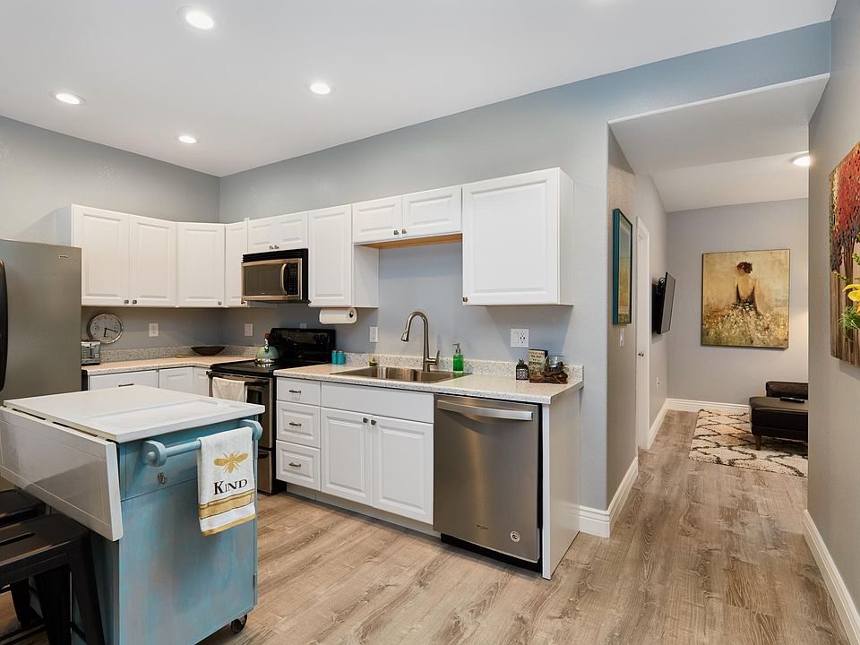 Furnished Suite - Old Colorado City Immaculate, fresh style awaits you in this spacious, newly remodeled lower-level suite in the heart of Old Colorado City. From the high ceilings to the heated bathroom floors, this 2BR/1BA is your ideal getaway! Steps away from OCC's excellent restaurants, shops, galleries, night life, and seasonal farmer's market in Bancroft Park, there is no better location for all that Colorado Springs has to offer! Garden of the Gods, Manitou Springs, and the fun of downtown are within minutes. THE SPACE You will have your own private entrance to this spacious, air-conditioned, 1200 sq ft guest suite through the back gate of the main house, where you'll find a cute little passage-way with cafe lights and a private table and two chairs where you can enjoy a quiet morning coffee. A beautiful handmade iron handrail guides you downstairs into the generous kitchen with a full-sized stove, fridge, and everything you need for a homemade meal at your fingertips--including a large flat-screen television on the wall with cable. Read a book, watch a movie, or play a game from the comfortable sectional sofa in the cozy living room. The ample recessed lighting keep the space bright and cheerful. In the modern deluxe 3/4 bathroom, you'll find double sinks and a huge, walk-in, tiled shower with luxury shower heads. Radiant floor heating will keep your toes toasty warm on our cool Colorado mornings. Both bedrooms are amazingly comfortable. One has a king bed and one a queen bed, and both are fully stocked with fresh crisp linens and both have private cozy sitting areas. NEIGHBORHOOD This suite is in Old Colorado City (OCC), one of the greatest neighborhoods in Colorado Springs. OCC is right between Downtown and Manitou Springs, and has a fun and vibrant scene. Garden of the Gods is just a few minutes away by car. INQUIRIES AND APPLICATIONS If you are interested in this home, please read through the self screening questions below and contact us for a showing. Don't hesitate to reach out, should you have any questions or concerns. We are happy to help! 1. Are you a nonsmoker? 2. Is your household income 3 times the monthly rent or more? 3. Rent is due one month in advance. Can you meet this requirement? 4. Are you willing to fill out a separate application and pay a separate application fee of $75 for each person over 18 who will dwell in the rental unit? 5. Are you willing to submit to a background screening (including eviction, bankruptcy, and criminal reports for you and everyone over 18 who will dwell in the rental unit)? Screening may include contacting your current and past landlords, current and past employers, and personal references. LEASE TERMS Offered fully furnished for "Corporate" rental (30 night minimum, 3 months given preference) Rates are $1800/mo through March 15. Written lease, positive ID, and security deposit required. Includes utilities, snow removal, and MONTHLY CLEANING! NO SMOKING INDOORS. No pets.