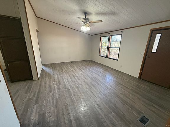 Beautiful wooded setting on paved road with large detached pole barn. Three bedroom two bath manufactured home with nice deck on the back plus and attached 25 x 16 garage. Heat pump. CenterPoint electricity, Pike Gibson Water.