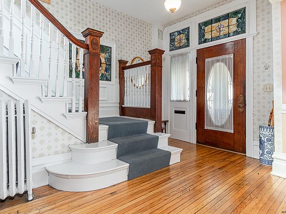 Charming and meticulously maintained Victorian home in the lovely,historic, and walkable Stockade district has been tastefully updated for modern needs. Eat-in kitchen with granite countertops and cherry cabinetry overlooks custom deck and lush gardens. Cozy living room with built-ins would also make a superb office, while the spacious living room and formal dining room, complete with fireplace, plentiful windows, and gleaming hardwoods, create a perfect entertaining space. The roomy primary bedroom features an en suite and 2 walk-in closets, while 3 additional bedrooms, a fully insulated walk-up attic, 1st floor laundry, and a full basement with egress provide endless possibilities and convenience. Private parking area in the rear of the home easily fits 4 vehicles. Priced to sell.