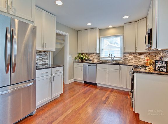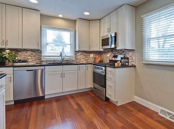 Enjoy all the comforts of home in this beautifully renovated 2 story colonial with full finished basement, oversized lot, walk to town location and sought after school district. Gorgeous and trendy cream kitchen with oversized cabinetry featuring under mount cabinet lighting. Kitchen appointments include brand new stainless steel appliances, glass and stone backsplash, granite counters, recessed lighting and ample space for kitchen table and chairs. Gleaming hardwood floors and freshly painted thru out, handsome gas start fireplace, spacious foyer leading to wrought iron staircase, main level full bath. 2nd level bath appointed with brand new tile surround and glass door shower, new vanity and tops. Additional upgrades include new siding, windows, furnace and A/C. The basement family room is perfect for entertaining which also includes an additional bedroom and half bath. This home is ready...all you have to do is move in and enjoy!