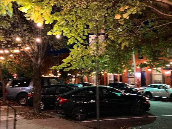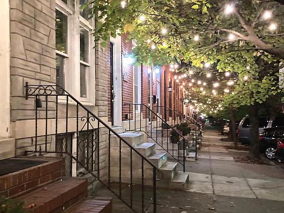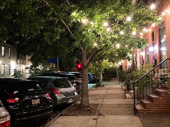 Large 2-bedroom townhome within walking distance to Patterson Park, located on beautiful tree lined street with lights in all the trees at night.