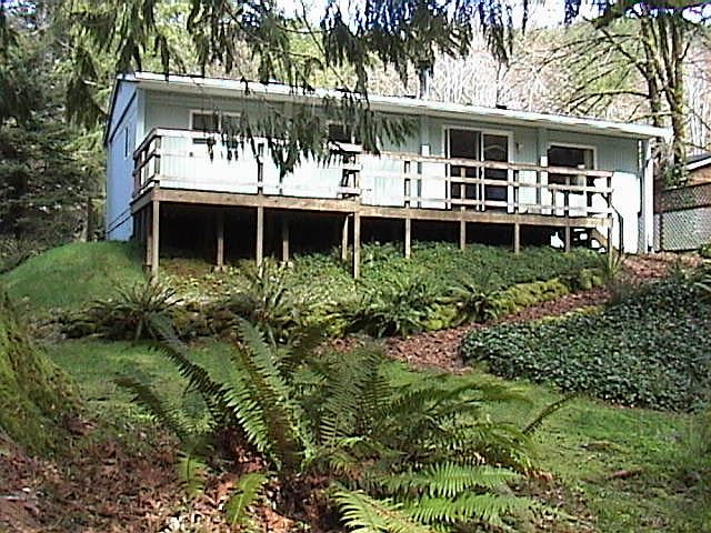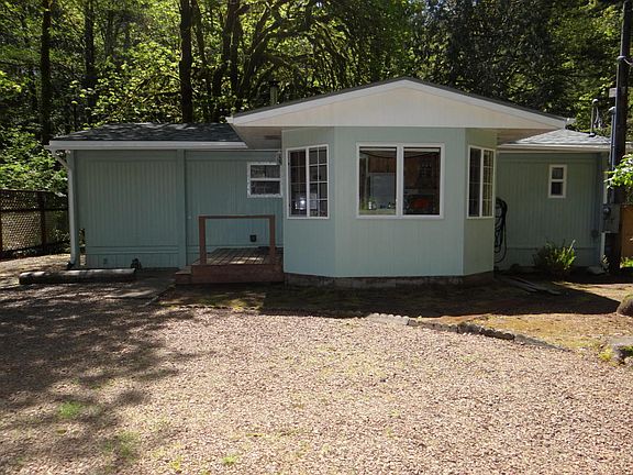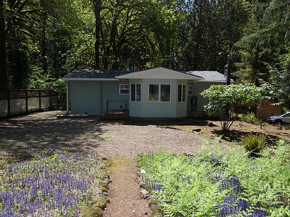 Originally a 1968 double wide mobile with 12x12 addition, all is on a cement foundation with a frame roof structure. Remodeled into standard frame home in 1998/99 including 100% new wiring, plumbing, kitchen, bathroom, interior walls, southern yellow pine floors, ceilings, all custom windows, porch/decking, roof, and heating system. Roof replaced again including plywood Oct 2016. Bathroom features hand-painted Talavera tiles with pebble work and burl wood accents. Floor throughout much of the house has been overlaid with pet-friendly Coretec luxury vinyl acacia-style planks, lending extra insulation and durability. Baseboards have also been added throughout. New space-saving stacked washer/dryer replaces two units. Back deck outfitted with removable panels and gate to ensure pet safety. Small area on the front, west side of the house is now fenced and gated in cedar to provide protected garden space. New septic system was installed upon purchase.
