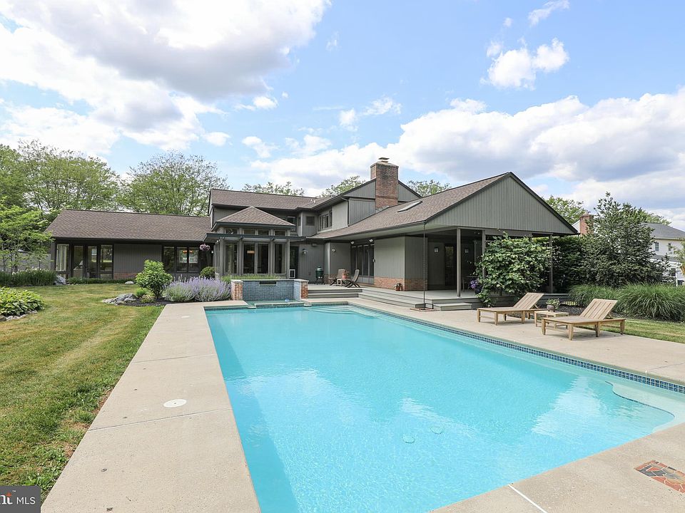 Wow Factor X Ten! Welcome to this stunning home, an eclectic mix of Contemporary style and Nature, reminiscent of Frank Lloyd Wright's philosophy of a structure being in harmony with the environment. This home offers approximately 4000 sf of well thought out space inside and out, with 4 Bedrooms, 3 full Baths and 1 half Bath. The Foyer entrance sets the tone for what's to come, bringing you into the Living area, with vaulted ceilings and an abundance of windows which overlooks the gardens and pool. The Dining and Living area has an open floor plan feel, and yet you'll find there's intimate areas carved out throughout the main floor for TV watching, cozying up to a fireplace or shooting pool and playing games. The Kitchen is a cooks Kitchen, with cherry cabinets, granite counters and top of the line appliances (Subzero, Wolf 4 burner gas stove and griddle, Bosch dishwasher) and is an inviting space to cook and create memories and food with family and friends. Don't miss the extension of the Kitchen with its Thermador plumbed coffee station, speed oven and wine fridge, all located in the Butlers Pantry. The Breakfast Room is surrounded by windows and is a feast for the eyes, showcasing a dropped coffered ceiling. There's also an entrance to the deck and outdoor entertaining area, beckoning you to bring a cup of coffee and sit for a moment. There are 2 custom built office/workstations, one off the Breakfast room and another conveniently located in the Family room, which makes doing homework or working at home a dream come true. The Family room flows from the Kitchen and has a 2-sided fireplace at one end and a TV area set up with surround sound on the other, with custom millwork and cabinetry throughout. The Billiard room has vaulted ceilings and is on the other side of the 2-sided fireplace, with a soaring brick and granite wall above the mantle. A main floor Bedroom has a walk-in closet and a stunning updated en suite tiled bath with double sinks allowing options for one floor living, an in-law or guest suite. The Laundry room, well positioned in the main floor layout, has vaulted ceilings, skylights, a folding area, cabinetry and ample storage to keep you organized and make laundry a pleasure. Don't miss the very cool half Bath, next to a wall of custom trimmed closets, which completes the main floor. A beautiful wood turned staircase leads you to the 2nd floor to Bedroom 2, which overlooks the backyard and offers vaulted & beamed ceilings, a sitting area and walk-in closet. The hall bath is conveniently split up so it can be used by more than one person at the same time. Next door, Bedroom 3 offers corner views. Finally, the Owners Suite will wow you! A "just the right size" Bedroom with abundant windows showcases the backyard views, as well as having its own private deck. The primary Bath has double sinks and a luxurious oversized shower (tiled). The generously sized custom Walk-In Closet is a dream come true and offers the best use of space. The lower level is simply finished with a few rooms for you to use as you see fit, as well as utility areas & storage closets. The home is filled with natural elements, abundant sunshine and incredible privacy. The outside environment compliments the interior with naturally lush landscaping, flowering trees/shrubs and is a gardener's delight without being overwhelming. The pool, patio and deck offers intimate gathering spaces and is sure to please when entertaining family and friends. An oversized 3 car Garage provides plenty of space for cars & storage and provides access to the fenced yard and pool area. The home was designed, built and is owned by an award winning Bucks County architect and has been meticulously maintained by the original owners, offering an incredible lifestyle. A great central location with easy access to Grand View Hospital, 309 and commuter roads. This is a must see home to appreciate what it offers...words and pictures just don't do it justice!