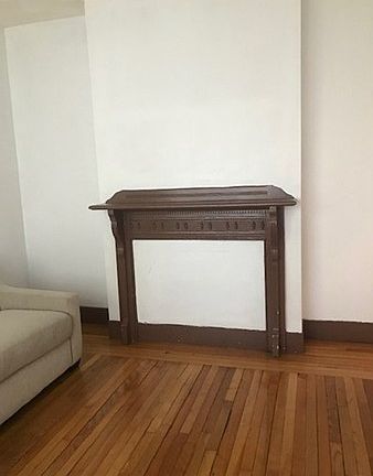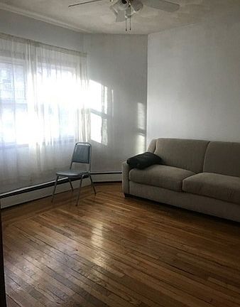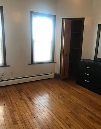 Bright 4 room 1st floor apartment with hardwood floors throughout, eat in kitchen, basement for storage and laundry, shared back yard, replacement windows, There will be a new vanity and toilet installed. This is a 4 family house with some off street parking shared by the tenants but no assigned spaces. Be prepared for on street parking. No pets no smoking.