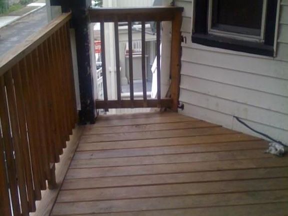 This 3 bedroom features an eat in kitchen, carpeting, and a large private deck and yard. Utilities are not included.}