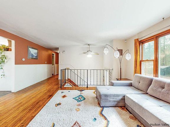 This light-filled raised ranch is a must see! The main floor has a nice sized eat-in kitchen alongside an open living space with a large picture window. Down the hall you will find two nice sized bedrooms, a small office or bedroom & two full baths. The downstairs living space is finished & currently being used for a music studio which is a nice fit. There is a private office that can be used for sleeping & bathroom which is a comfortable extended living space or private area for out-of-town guests! The house, set back down a long tree lined driveway, is on a generous lot that has mature flowering trees & shrubs & with a sprawling lawn, there are endless possibilities for a pool, gardens, patio etc. Recent improvements include a new roof, gutters, washer & dryer, range & dishwasher. The house holds excellent value & with some updating, this traditional raised ranch can be your new oasis. Located minutes to the heart of Woodstock, 10 minutes from the NYS Thruway & close to shopping in Kingston. Nearby landmarks include the Ashokan Rail Trail, the popular Overlook Mountain Trail & the Emerson Resort & Spa. Surrounded by endless options for hiking, biking & swimming, this Hudson Valley home is just waiting for a new owner!