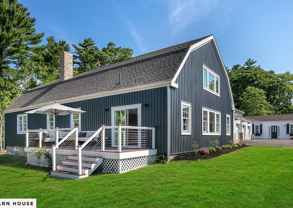 BEAUTIFUL RESIDENCE BUILT FROM HISTORIC FARMHOUSE (1 of 2 homes on property) W/ MARION HARBOR BEACH RIGHTS. Thoughtfully renovated 1700s barn (!) w/ exceptional finishes and 3,902 sq ft of modern open-concept-style living space w/ exquisite kitchen & large island opening to dining/living great room, mudroom entry adjacent to 2 car garage, formal front entry hall, 4 bedrooms (1st fl master bedroom w/ensuite bath and walk-in closet; as well as a second 1st floor bedroom w/ ensuite bath), 3.5 baths, great closet/storage space throughout, large basement all set on a combined 3 acres of grounds w/ private and common outdoor space. This property was painstakingly rebuilt w/ the utmost attention to detail & craftsmanship. Everything in this home is new down to the studs. All new systems. Central AC. This property owns golf course 3rd hole, for which course has easement; homeowner in return has beach rights to "Parcel F" behind course 6th hole. Plenty of space to work & school at home!