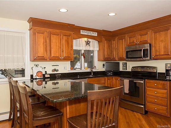 SPACIOUS COLONIAL NESTLED ON A SLEEPY LITTLE CUL DE SAC IN A FANTASTIC SIMSBURY NEIGHBORHOOD! MOVE RIGHT IN and enjoy 4 bedrooms, 2.1 baths and refinished hardwood floors! Whip up some delectable meals in your eat in kitchen that boasts granite countertops, custom cherry cabinets, pantry AND breakfast bar! Cozy family room with fireplace is perfect for hosting game night with friends OR a quiet night in with your favorite mystery author! Septic system NEW in 2018! Well pump & hot water heater NEW in 2017! NEW garage doors & home's exterior painted in 2012! Freshly painted, updated bathrooms AND popcorn ceilings removed! First floor laundry, den or office option AND formal dining room with vaulted ceiling! Master suite with FULL bath and DOUBLE closets! Sip your morning coffee and enjoy the sounds of nature while you lounge in the 3 season porch! Backyard and patio is like your own private getaway where you can grab some blankets, make s'mores and gaze up at the stars! Tucked away yet conveniently located near Mclean Game Refuge, shopping, restaurants, local highways AND of course the beautiful Northgate Falls!