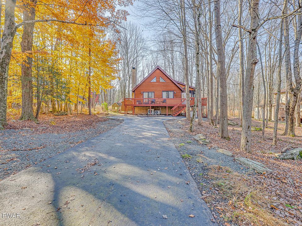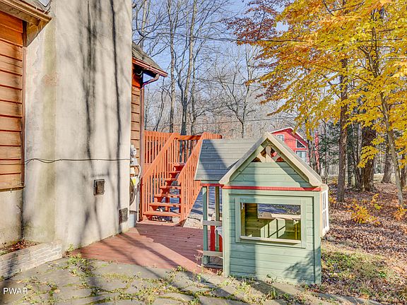 4 bedroom 2 bathroom cabin style chalet only 2 minutes walking distance to Deerfield lake and a 12 minute walk to Roamingwood lake & Main pool/beach area. Upstairs loft and bedroom with pull down movie theater screen and projector. Wood stove in Living room. Dining room/kitchen combo with stainless steel appliances. Zoned AC/Heat units in living room and lower level family room. Screened in porch outside of kitchen, custom children's sized playhouse and exterior storage shed located outside in front yard. Schedule a showing with your realtor today!