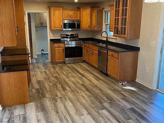 Remodeled Rancher w/hardwood floors, new vinyl plank and new carpet. New granite, new vanities, new gas furnace and new A/C. Large layout, walkout finished lower level, 23 x 6 sunroom, large 2 car garage, great flat yard w/room to expand patio or deck.