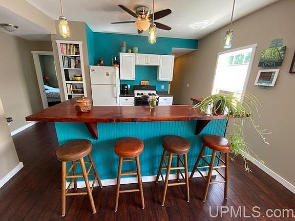 Looks Like It's New! Seller took the inside down to the studs, rewired, insulated and drywalled everything. It's quite nice. Modern kitchen with snack bar & built in dishwasher. The open floor plan really works well. You'll love the easy care laminate floors, the window seat and the lighting. Master bedroom with double closets and a private bath with walk in shower. 2nd bedroom has a big double closet and great natural lighting. Modern heat & electric. A mudroom, small screen porch connects the house & the big attached double garage complete with work space. Even a concrete drive for easy snow removal. Want more? Big deck in front, small patio area outside the small porch. Vinyl window throughout. Ceiling fans. Extra pantry storage. Everything is done. Just bring your furniture. Montreal River less than 1/2 a block away. Well kept, pleasant neighborhood. What's not to love? Call or text today to make your appointment.