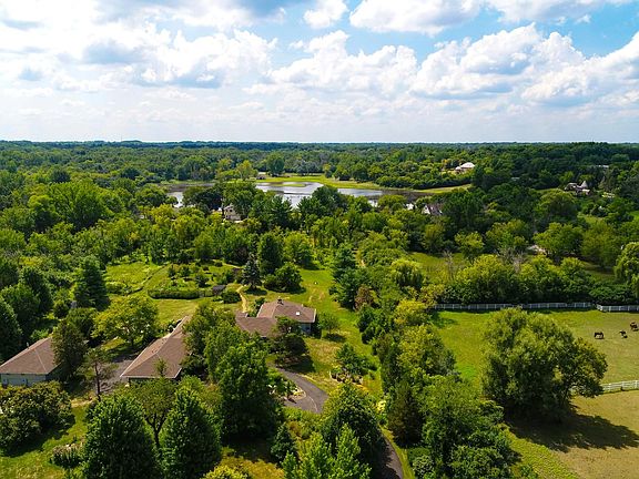 Escape to your own private sanctuary. Rare Robert Parker Coffin prairie ranch on 5 park-like acres. An idyllic country lifestyle yet close to town-2 blocks from high school, five minutes to downtown Barrington train station, with a 45-minute express train ride to Chicago. Or work from home with available high-speed internet. Beautiful views from the windows. Koi pond with waterfall in the center of the circular drive welcomes all to the home. A functional greenhouse and zen-like screened gazebo provide special personal spaces year-round. There is an expansive bluestone terrace with seat walls and a lower patio with a fire pit for personal relaxing and outdoor entertaining. A variety of outdoor spaces-cool shaded and sunny grass lawns and woods with trails and a variety of beautiful native trees and shrubs make up a yard fit for various outdoor activities. Nature beckons. This rock-solid, well-maintained house features an interior upgraded with solid wood doors, custom woodwork, exotic hardwood floors, sophisticated lighting and thoughtfully designed ample storage. The attached 4-car heated garage and a separate heated hobby barn are ready for your imagination and special interests. The house features a lower level bonus space which is currently a fitness center with a large full bathroom. Master suite contains his/her bathrooms and built-ins for storage. New roof installed in 2016 with 50-year shingles along with new gutters with leaf screens. 48 minute train ride to Chicago.