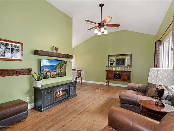 Pride of ownership is the first thing you'll notice when you pull up to this home! A beautifully maintained exterior leads into a well kept 3 bedroom, 1.5 bathroom ranch with a large open living room featuring cathedral ceilings, a full, partially finished basement with 2 bonus rooms and additional space for storage. This home features hardwood floors throughout the living room, dining room and bedrooms. Master bedroom has full, updated bathroom attached. Step outside to enjoy your private backyard with an above ground pool and fire pit to enjoy during those summer nights! Located in a quiet neighborhood- close to the train station and parkway, making it an ideal location for a commuter. Don't wait to make this one your home! Newer A C, furnace and hot water heater.