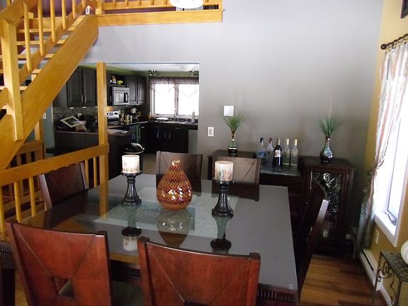 Centrally located in Londonderry and close to everything, restaurants, grocery stores, and shopping yet at the end of a quiet street. The yard is huge and great for family and pets. Enjoy the beautiful perennial flower beds in the Spring and Summer. Entertain on the enormous private deck. The house has just been recently painted along with a new roof. There is also potential for an in-law apartment. There are 3 bedrooms and 3 baths plus a finished basement and detached 2-car garage. The quiet neighborhood and private large backyard give this home a pleasant feeling. The open concept kitchen, living and dining room feature 2-story cathedral ceiling with lots of natural light, two ceiling fans, pellet stove and balcony looking down from second floor. Kitchen is freshly painted and has a new dishwasher and range. Washer and dryer are also new. Roof is 1 year old and both pellet stoves are new. Nice home in a nice neighborhood.