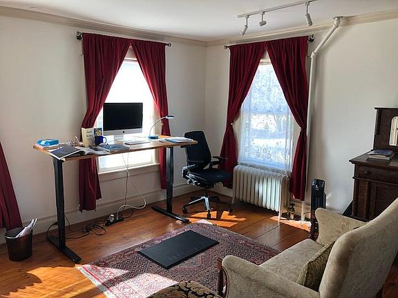 Great office space in beautiful Woodstock, NY., with views of Overlook mountain and Tannery brook. Located near the Village Green for a unique town and country environment. You can walk to 12 restaurants, a coffee shop, parks, hiking trails, a large variety of stores including Sunflower Foods, hardware, and an office/art supply store. Trailways bus stop is a 1-minute walk that can take you to NYC in 2 hours. Please call for more details. The office is on the ground floor with views in three directions including Overlook Mountain and a little bridge over Tannery Brook. It is set back from the street with a large front lawn and private office entrance. Fully renovated with new walls, wide plank floors, 1 closet, and a shared bathroom with one other office. $1000 a month. Heat included. Available with a security deposit and last month's rent No smokers or dogs. One year lease. The rent term can be longer depending on the commercial use of this office. Heat included. Tenant pays electric bills. Security deposit plus last month's rent.