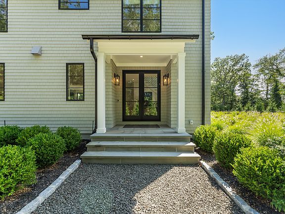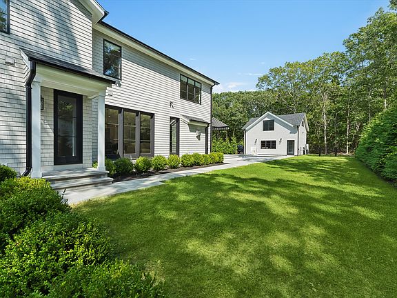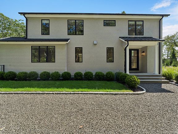 This impeccable new 4 BR, 4.5 BA Quogue Village rental is available for both off-season and summer rental. Enter via the double-height foyer into a bright, contemporary great room with plenty of space for entertaining and relaxing. The main living space includes an open-concept kitchen with professional-grade appliances, a dining area with seating for 8, a comfortable living room with fireplace, a den with pull-out couch and full bath, and easy access to the entertainment spaces outside. Upstairs there's a generously-sized primary suite, a queen bedroom with en-suite bath, and two more guest bedrooms (one currently used as an office) with shared bath. Outside there's a deck with lounge seating, a stainless-steel bar, heated gunite pool, and a 2-car detached garage with bonus room above. This stylish Hamptons home is situated on a quiet street just minutes from shops, the Quogue Wildlife Refuge, the village library, ocean beaches, and everything the area has to offer.