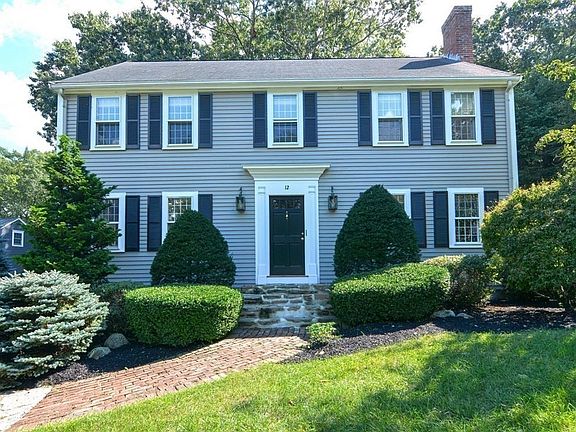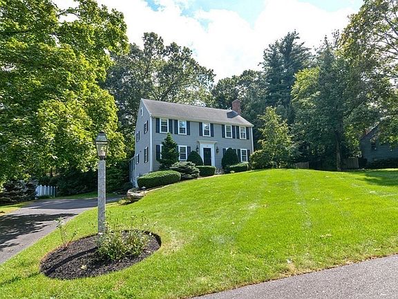 Move right in to this 4 bedroom classic Ed Waters colonial. Tucked away in a highly desirable neighborhood with sidewalks on a quiet street near town conservation land, walking trails, and recreation fields, yet easy highway and T station access! Add to that a top rated school district! Hardwoods flow throughout the first floor of the home starting in the front to back fireplaced living room, dining room with wainscoting, and the updated kitchen which also features white shaker cabinets, granite countertops, and stainless appliances. Off the kitchen you will find a large cozy family room with wide pine floors, double doors, built-ins, a wood burning fireplace and exterior access to a screened in brick patio overlooking a private backyard. Upstairs you will find four good sized bedrooms, the primary bedroom featuring an en suite tiled shower. Mechanicals have been updated including a Buderus boiler, hot water tank, and central air system.