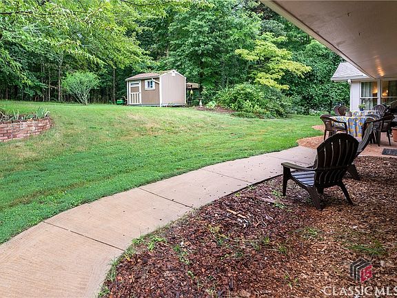 Rare find in Winder! This mid century modern is sure to please. Seller has done a bunch of updates and the home has been well-maintained as well. This spacious three bed two bath home sits on a double large lot in a quiet desirable subdivision just a hop skip and jump from the new Publix and the hospital. Wood floors throughout. Formal foyer with access to sunken living room with vaulted ceiling and a fireplace to the left and a hallway back to the bedrooms on the right. Living room leads to elevated formal dining room that connects to a huge eat-in kitchen with an adjacent keeping room/sunroom. Kitchen and Keeping Room both have access to the terraced backyard with a funky tile patio typical of its era. Primary suite has a newly renovated/updated bathroom with two more bedrooms served by an updated hall bath. Large newly added laundry room is off the back hall as well. New roof and HVAC. New water heater. The updated kitchen has loads of counter and cabinet space. Newer windows. New plumbing throughout the home and all the way to the artisan drilled well. Generous amounts of newly completed tree removal. Two car garage with access to water and sewer if desired. Heated and cooled work shop with dedicated electric. Storage galore! Much much more. Easy to show and ready to go!