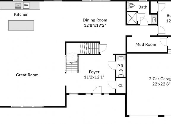- Ground Level Rooms: Kitchen, Foyer, Walkout, 1Bedroom, BathOthr, DiningRm, GreatRm, GarEnter