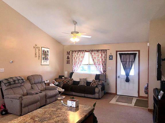 Located on a quiet street in the Saranac School district this ranch style home built in 2012 features 3 bedrooms and 2 full bathrooms. You will feel right at home with the open concept, cathedral ceilings in the living room and kitchen area, and a large kitchen with plenty of cupboard space, and a center island. The dining room area has sliding glass doors overlooking the fenced in back yard. In floor radiant heat throughout the home, and an attached and heated one car garage. Natural gas, town water and sewer.