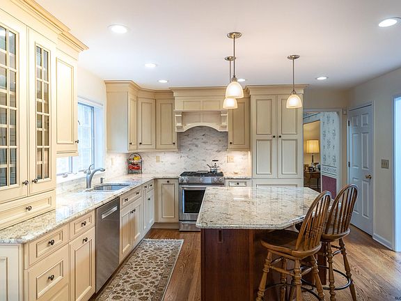 Situated on a quiet cul-de-sac, this well maintained colonial has been updated with the finest of details throughout! The Zarillo kitchen is a gourmet chef's dream with an abundance of cabinetry, granite counters, marble back splash, & stainless steel appliances. Family room with HW floors,arched window, and gas fireplace. Kitchen & baths updated less than 3 years ago. Large master suite w/ cathedral ceiling. Gorgeous master bath complete with soaking tub and tiled shower. 3 season sunroom perfect for enjoying family dinners. Semi-private lot w/ wooded hillside. Beautifully semi-finished basement could be plumbed for another bath. Convenient location in walking distance to elementary and middle school, & River Road Park. Less than 3 miles to Niskayuna HS, shopping, & dining. Move right in!