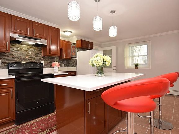 Beautifully renovated, large 2-family home nestled in highly sought-after West Side!! First-floor unit boasts an ultra expansive living room/kitchen combo, ceramic tile floors, and high ceilings. The open concept layout is ideal for entertaining and large family gatherings. Additional features comprise tastefully remodeled kitchen with island, new cabinetry, and tiled floor; ample bedrooms with walk-in closets, and two redesigned full baths. Second-floor unit showcases a remodeled eat-in-kitchen with stainless steel appliances, hardwood floors, and updated large bath. Potential for roof deck over (flat) rubber roof!! Close proximity to Route 24, Rte. 27, Rte. 28 and public transit, including commuter rail. Great value!!
