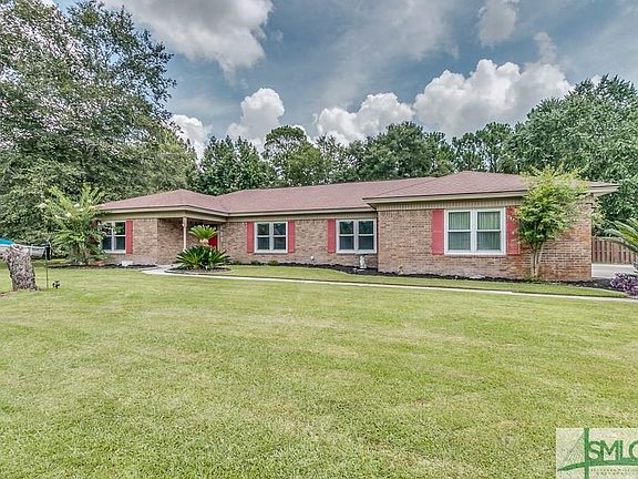 INGROUND POOL! NO HOA and NO Flood insurance required! Welcome home! Nestled on a private 1 acre wooded lot, this gorgeous and extremely spacious, all brick ranch home has new paint throughout, new wood floors and new carpet! Large gourmet kitchen has granite counter tops, stainless steel appliances, GAS STOVE and holds a great view of backyard and pool! 3 large bedrooms, 2.5 bath with .5 bath adjacent to the pool area, living room, family room, dining room and eat in kitchen and extra large walk in attic space...this home is extremely spacious and has it all including a Large 19.6x11.6 shed in backyard! Conveniently located with easy access to I95,Hunter Army Airfield, Pooler, Fort Stewart, and Savannah you won't want to miss this one!