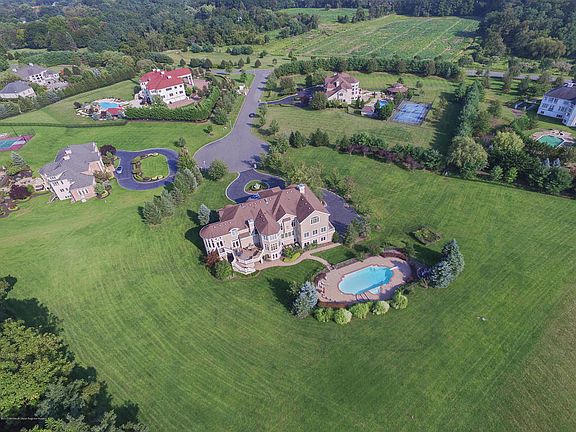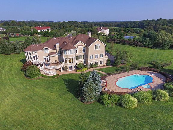 This beautiful 7 bedroom 6 and a half bath luxury home with high ceilings, gleaming hardwood and ceramic floors, huge gourmet kitchen, stone pillars,full finished basement with 12 foot ceiling including home theater is located on a 3 plus acre lot on cul-de-sac in a fabulous central New Jersey neighborhood of other substantial custom homes is now presented with a special offer to the buyer who requires interior design assistance. We can show you your vision with 3D photorealistic renderings of what your home will look like with your new ideas, matching the actual dimensions of the home. Outside features include a 50 foot inground pool surrounded by paver walkway and Trex decking enhancing the outdoor luxury experience. There are 4 garages and a real circular drive. Must be seen.